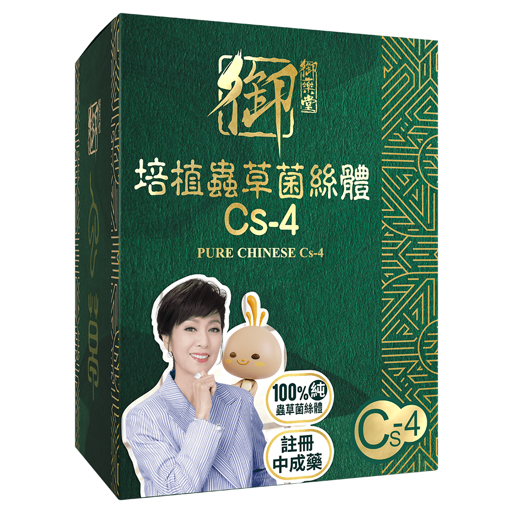 《御藥堂培植蟲草菌絲體Cs-4》,選用優質培植的蟲草菌種——蝙蝠蛾擬青霉 (Cs-4)。蝙蝠蛾擬青霉 Cs-4 是從冬蟲夏草分離出的高效菌種,通過人工培植生成雪白濃密的菌絲體。通過大學的科學研究証明其營養成分與冬蟲夏草相似,但價格更為實惠,顛覆香港市民對的傳統認知,是一種高純度的替代品。《御藥堂培植蟲草菌絲體Cs-4》經高科技精製而成,內含100%純蟲草菌絲體,富含高濃度的腺苷、腺嘌呤等有效成分,功效卓越,與一般培植蟲草產品相比更具優勢。